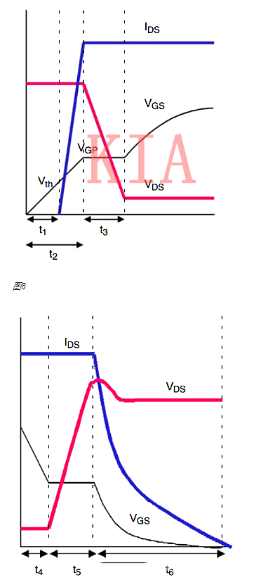 另外,規格書中的td(on)和td(off)可以近似看作是Vgs電壓從0開始上升到米勒平臺電壓的時間,即圖3中的t2。