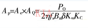 Km為窗口填充系數,一般為0.2~0.4;KC為磁芯的填充系數,對于鐵氧體為1.0。