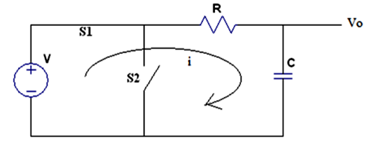 與純電阻電路不同,具有電容的電路中的電壓不會立即進入穩(wěn)定狀態(tài)。當(dāng)我們把電壓源施加到下圖RC 電路中,然后當(dāng) S1閉合時,電容C兩端的電壓將從零以指數(shù)方式上升到最終值。