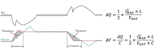 在負載發生跳變時(突然增大或者減小),電感電流無法快速跟隨負載變化,會導致能量不足或者過剩,從而出現下沖/過沖,如下圖所示: