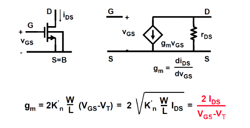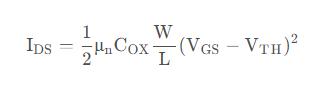 gm描述了柵源電壓對(duì)輸出電流的控制作用,因?yàn)閷?shí)際應(yīng)用中往往固定過驅(qū)動(dòng)電壓VGS?VTH,所以第三個(gè)等式gm=2IDS/VGS?VT使用最多