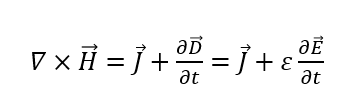 即電流或變化的電場(chǎng)都可以產(chǎn)生磁場(chǎng),麥克斯韋將ε(?E/?t)定義為位移電流,是一個(gè)等效電流,代表著電場(chǎng)的變化。(這里電流代表電流密度,即J)