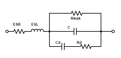 電容器的導(dǎo)線、電極具有一定的電阻率,電介質(zhì)存在一定的介電損耗;這些損耗統(tǒng)一以等效串聯(lián)電阻ESR表示;