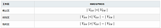 1.截止區(Cutoff Region):Vgs>Vth,PMOS關斷,沒有導電溝道,Id=0。